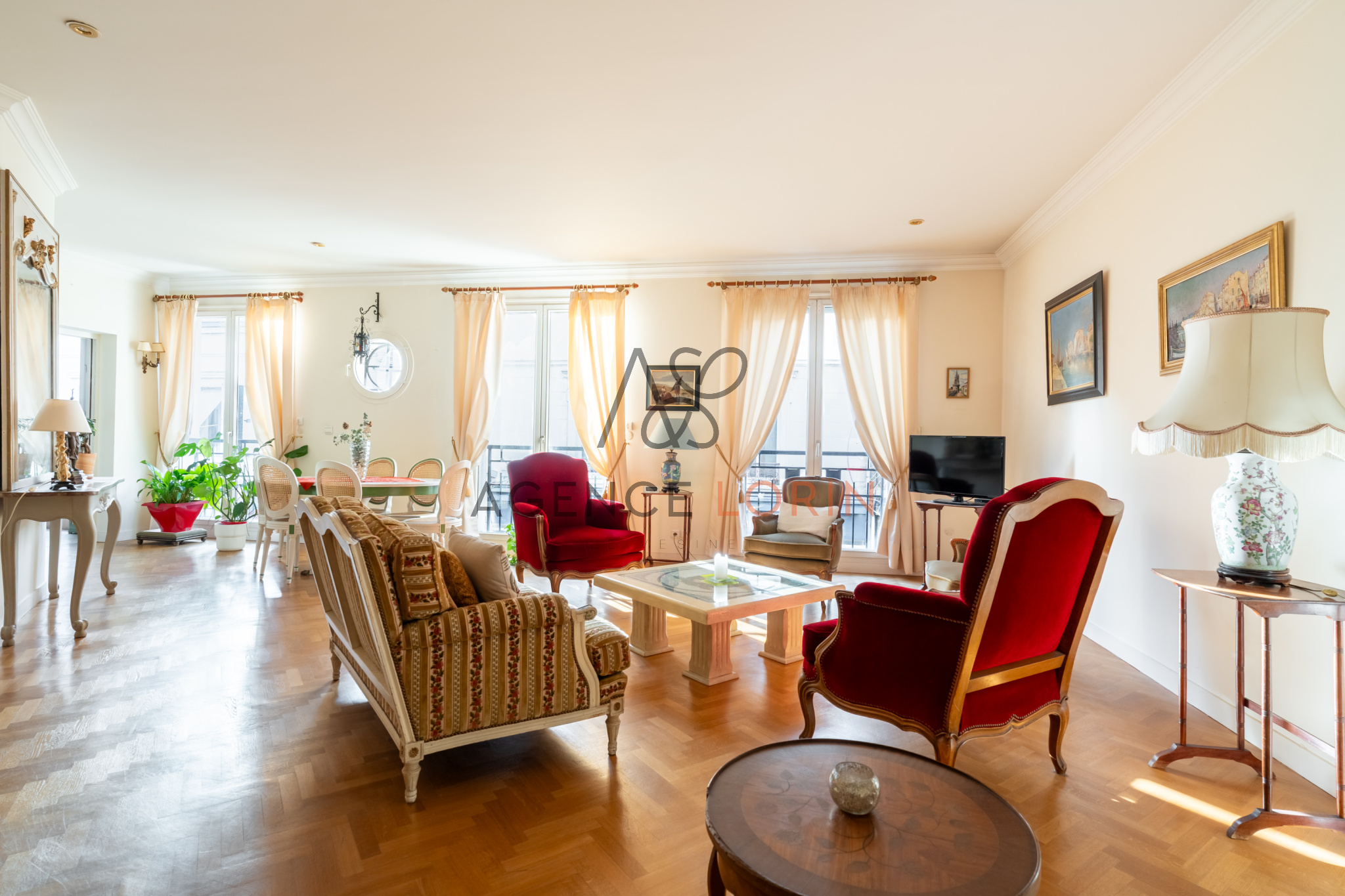 A VENDRE PAR L'AGENCE LORIN. Le Vésinet Centre, à proximité immédiate des commerces et à 4 minutes à pied du RER, bel appartement développant une surface de 144 m², situé dans un immeuble intimiste de standing, sécurisé, construit en 2003, comprenant seulement trois appartements et bénéficiant d’un ascenseur. Il se compose d’une vaste entrée, d’un double séjour parqueté de 45 m² exposé plein sud, d’une cuisine dinatoire entièrement équipée avec porte de service et coin buanderie, d’un dégagement avec placards, de deux toilettes séparées, d’une salle d’eau et d’une salle de bains, ainsi que de trois chambres avec rangements. Un box équipé d’un ascenseur (élévateur) permettant le stationnement de deux véhicules complète ce bien de qualité, rare sur le secteur.