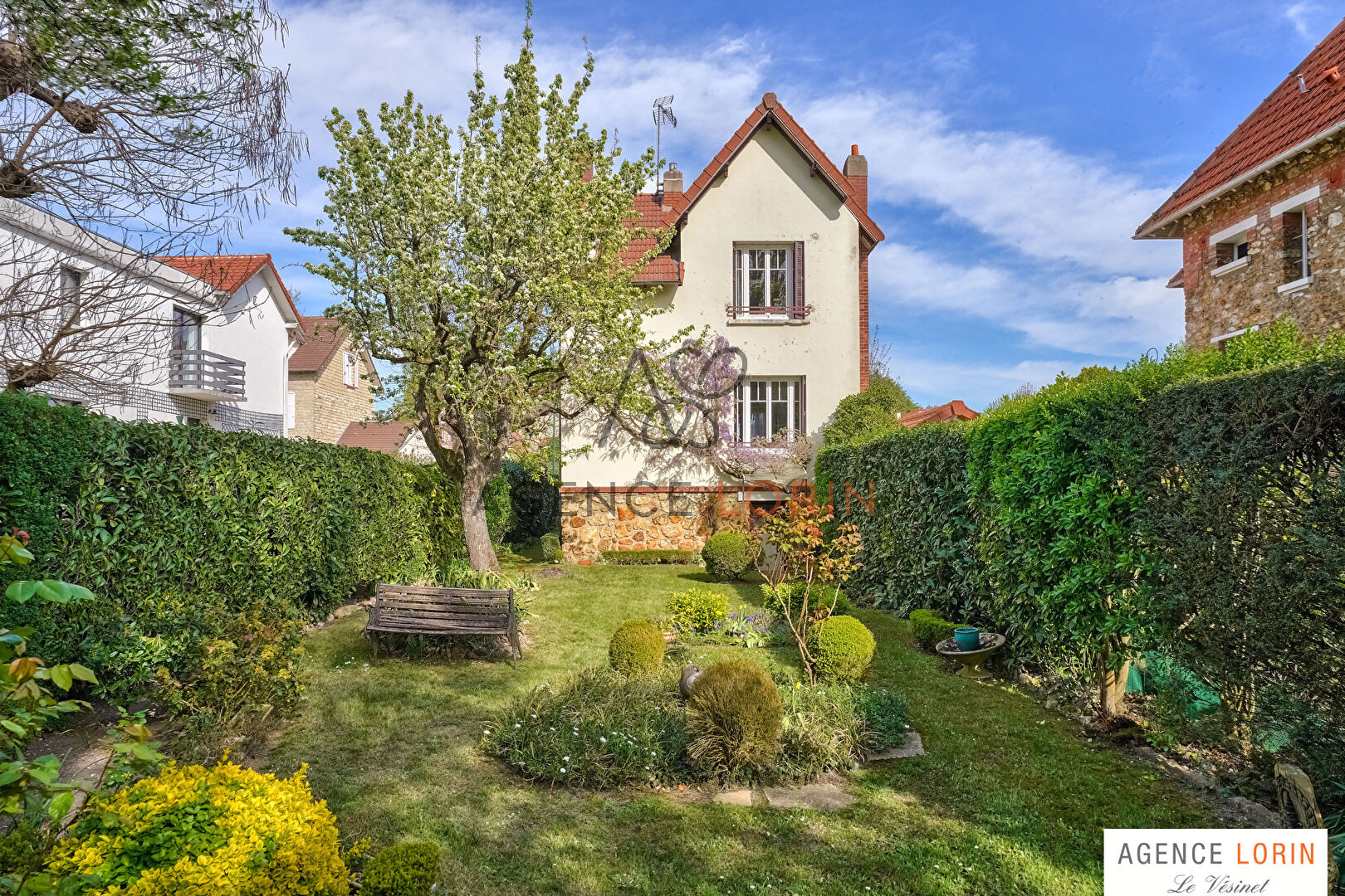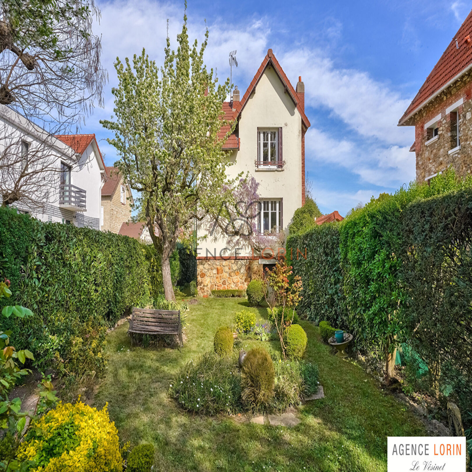 VENDU PAR L'AGENCE LORIN. Le Vésinet Lac Supérieur, à 13 minutes à pied du RER et des commerces, maison des années 1930 développant une superficie de 80 m², le tout sur une parcelle sans vis à vis de 300 m². Elle dispose en rez-de-chaussée d'une entrée, double séjour traversant de 27 m², cuisine indépendante et toilettes séparées. Le premier étage distribue un palier, deux chambres, dressing, salle de bains et un bureau. Sous-sol total offrant un garage, chaufferie et un atelier.