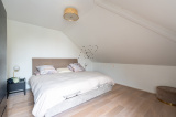 À l’étage, l’espace nuit se compose de trois chambres, d’une salle de bains avec douche et toilettes, ainsi que d’une seconde salle d’eau avec toilettes.