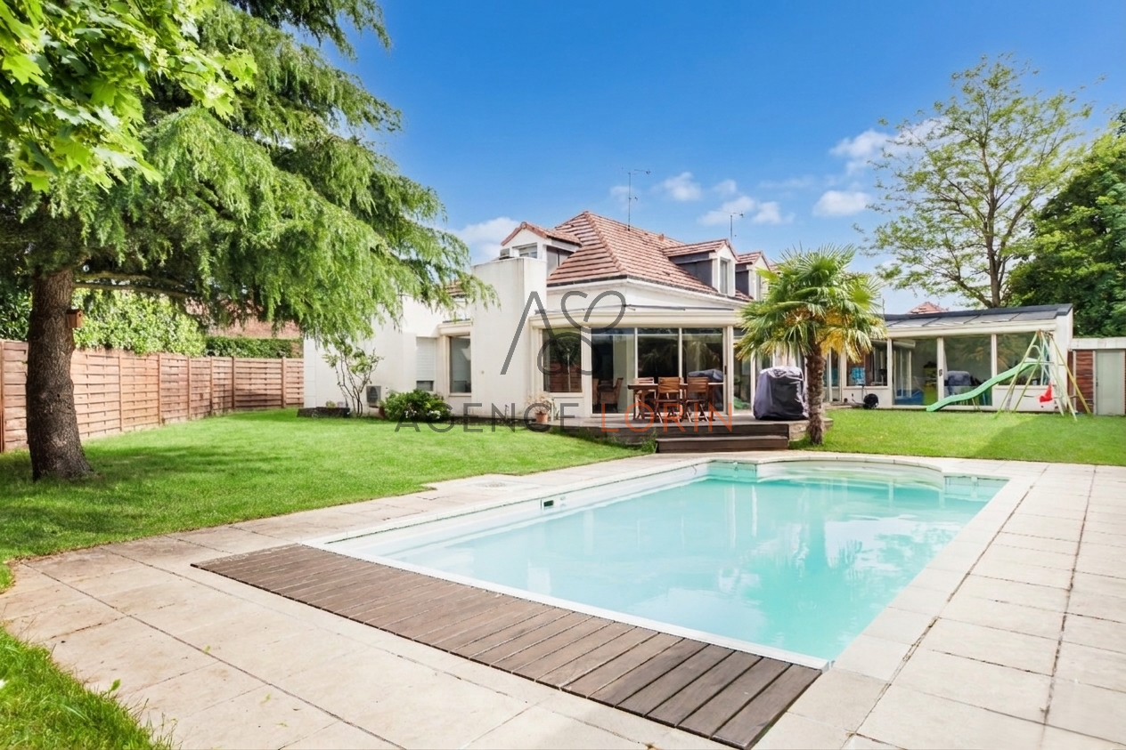 Aux portes du Vésinet, dans un quartier résidentiel recherché de Chatou, maison familiale au calme, édifiée sur un terrain paysager de 680 m² exposé Ouest, avec terrasse et piscine extérieure chauffée.